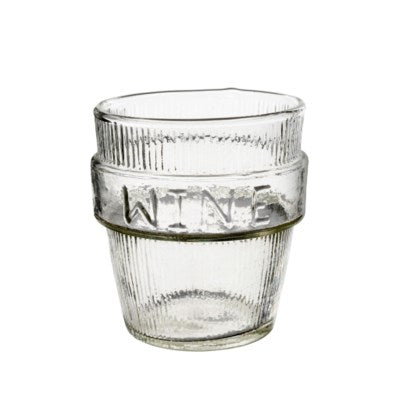 Cute and trendy stackable drinking glass with embossed letters.